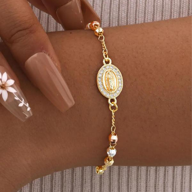 BÖLCSÖS SZIMBÓLUMOK - Részletgazdag kereszttel és csillogó, strasszokkal kirakott medállal díszített karkötőnk a hit kecses kifejezője, és kifinomult, jelentőségteljes kiegészítője stílusának.